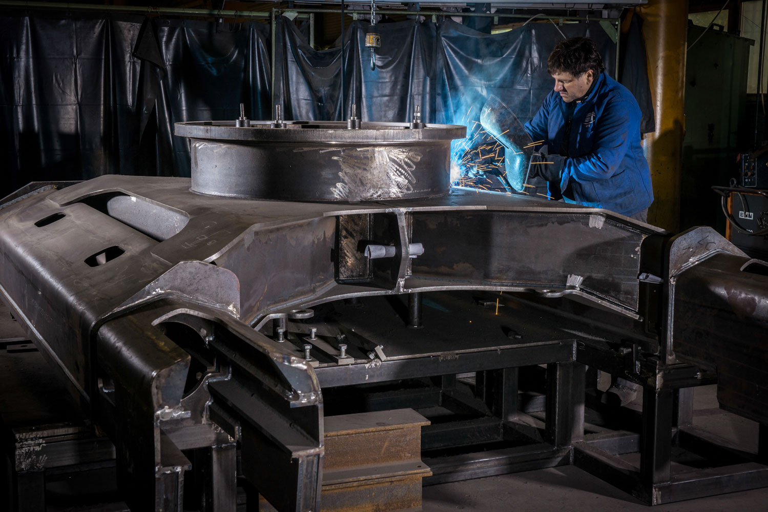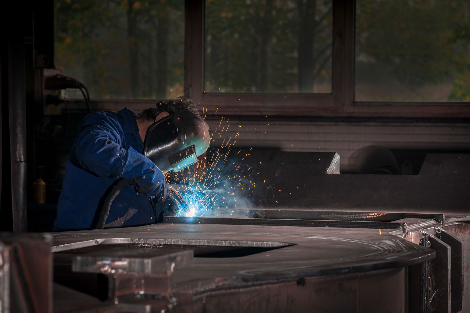 Our company has more than 40 manual welding machines (CLOOS, REHM). Our certified welders primarily perform manual welding of custom steel structures, but they also participate in the predefined phases of series production. In our welding workshops, we have a total of 13 electric and 7 manual turning devices in operation, which make the process faster and safer.